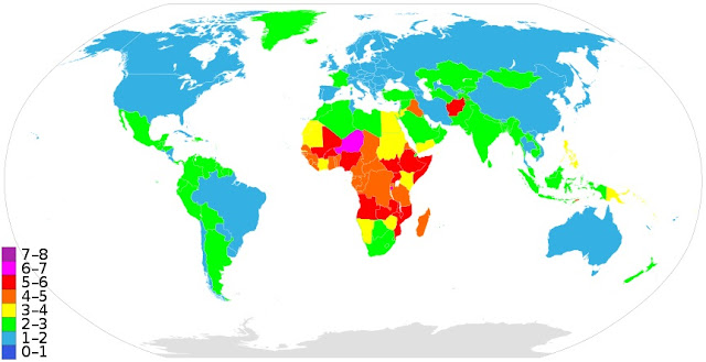 Observe the chart below. Even Brazil is at 1 to 2 children per couple. Break-even is 2. Link to source. Look at the source provided and scroll down to the part that says, "Major Regions." Observe that large sections of Latin America and East Asia are at below break-even levels. Even the other parts of Latin America are at 2 to 3 children per couple.